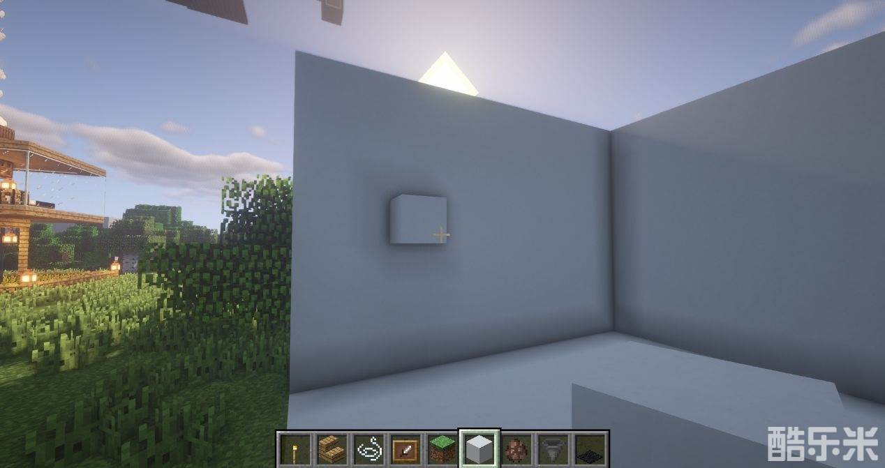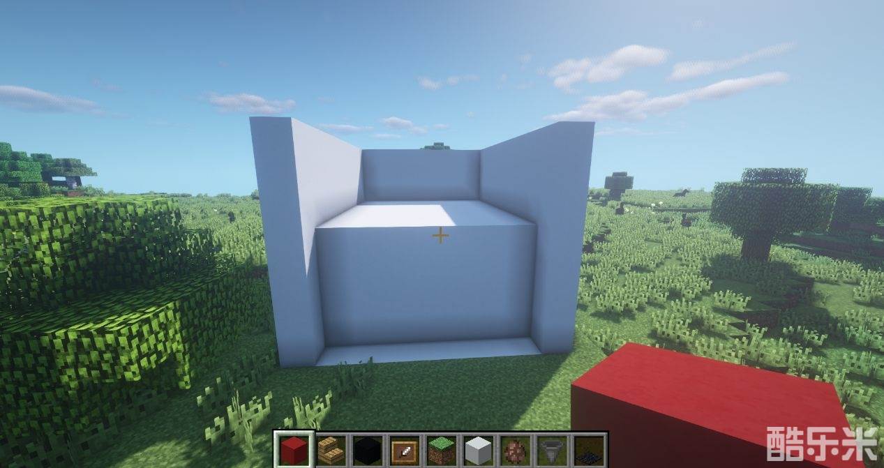 然后我们在据外侧一格的位置用白色混凝土垒起一面墙。高度刚好与第二层平齐接上就好!