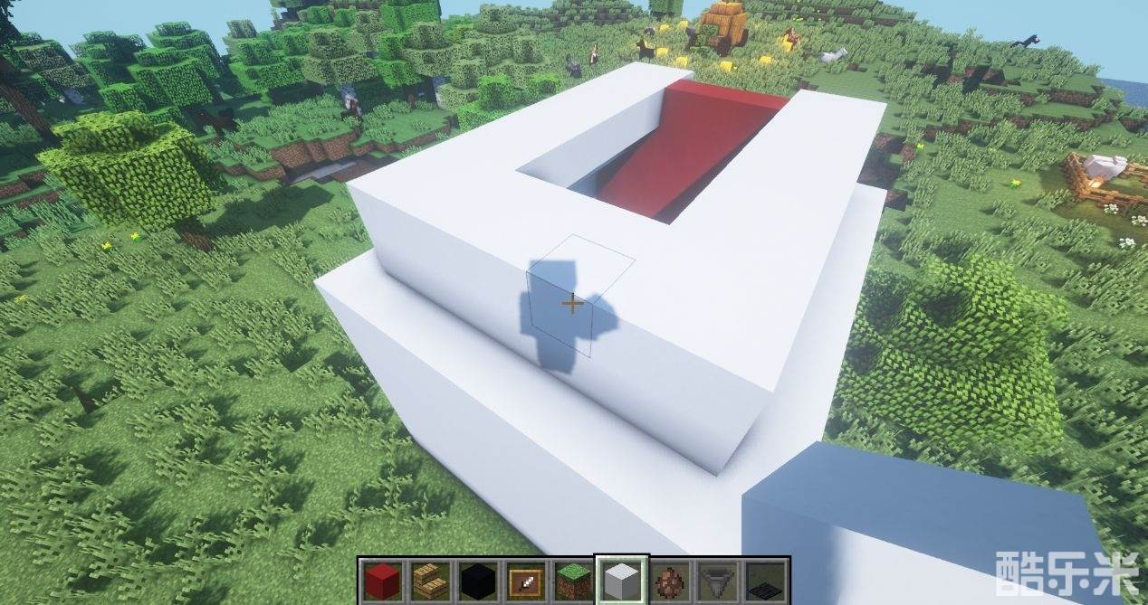 使得屋顶的U行每处都为两格粗即可。中间的部分放空等下一步补充!