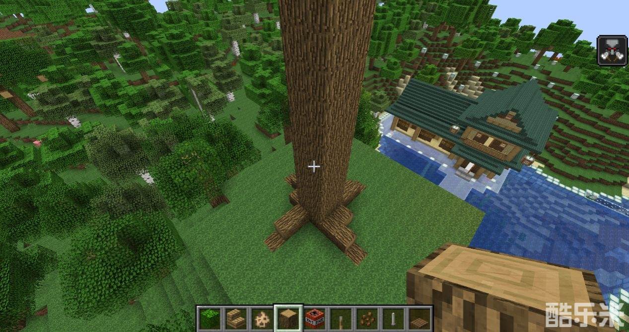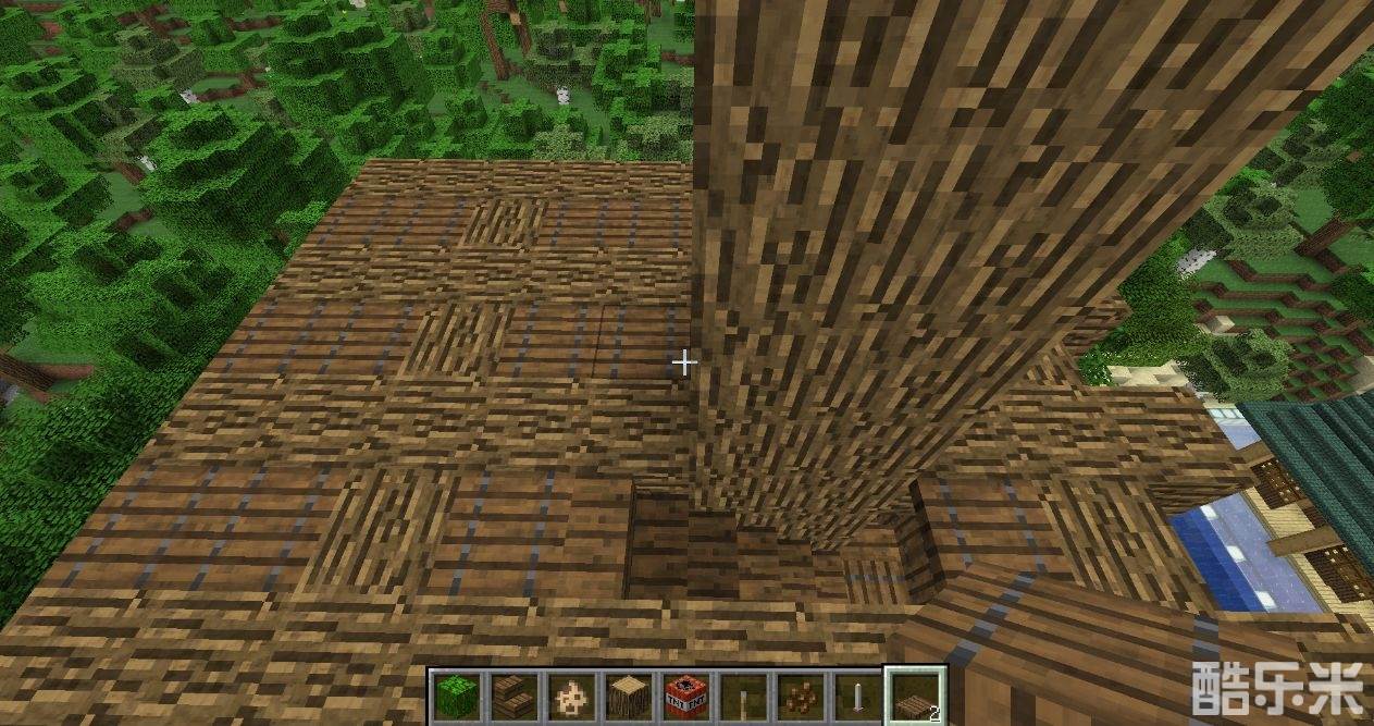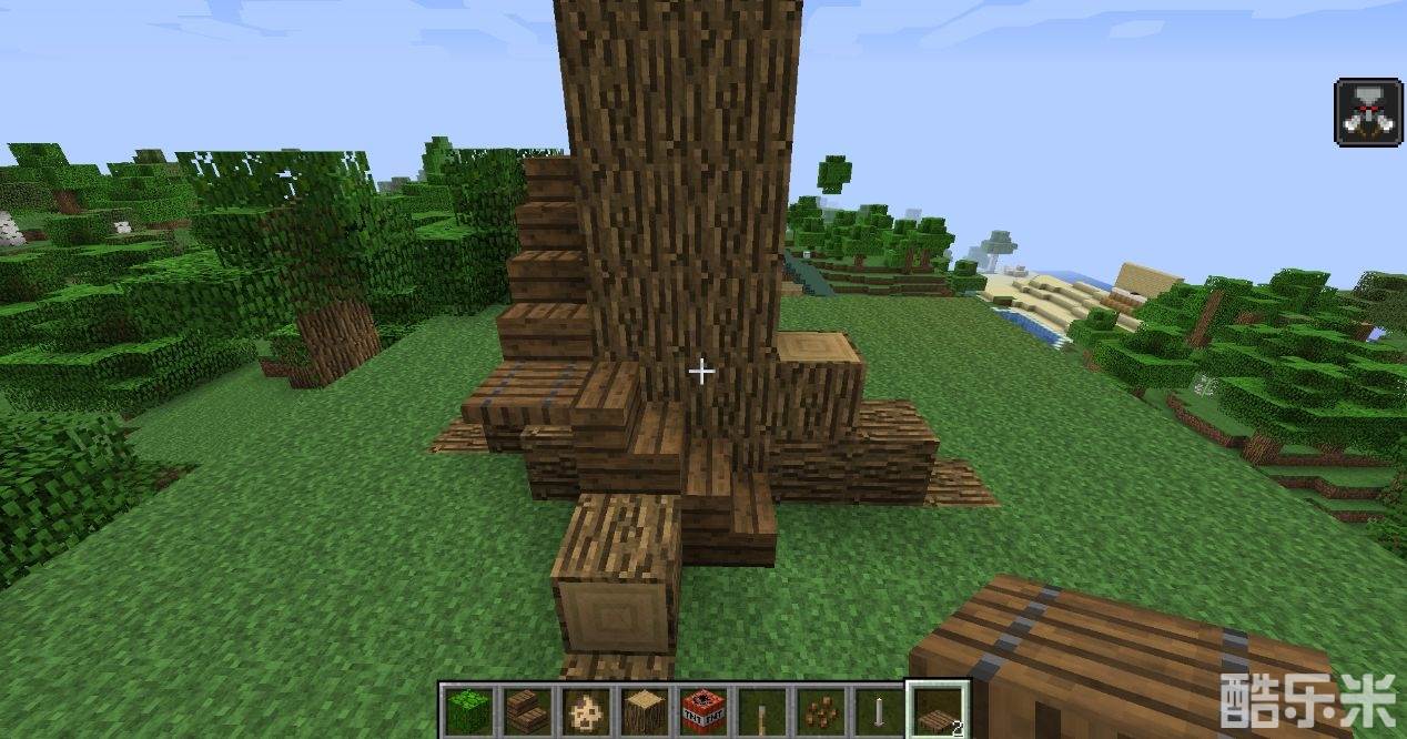 首先,在我们要建树屋的地基中心放置四格橡木或橡木原木,高度15格大概足够。