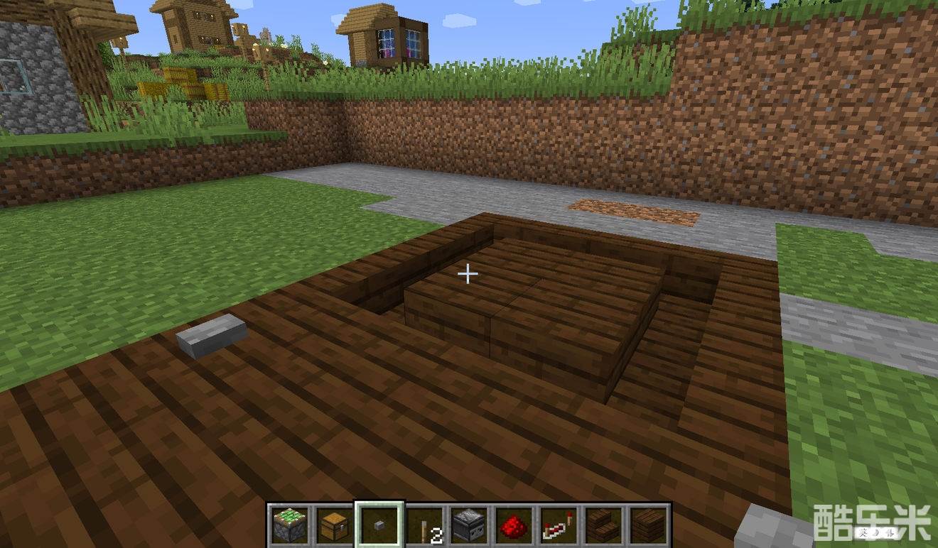 6、铺上木板隐藏起来,最后再放一个按钮就完成了!