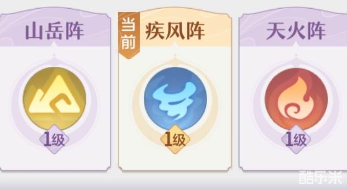 4、疾风阵:全体增加速度,不过被山岳和雷霆所克制。不过目前山岳使用的玩家会比较少,虽然被雷霆阵小克制,但是整体的影响不大,总的来说还是最适合基础的阵法,毕竟在战力接近时先出手的优势是非常大的。