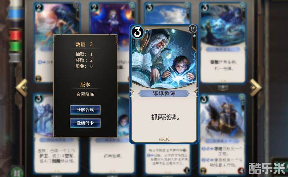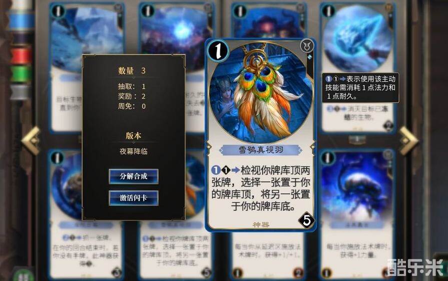 可带的有「雪鸮真视羽」、「碎星锤」、「寒冰吐息」、「敦敦教诲」。羽毛带满3张,能够更快的找到核心卡;碎星锤和寒冰吐息可在使用羽毛后过牌~