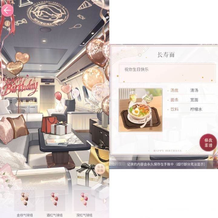 进入生日活动界面点击<心迹描绘>,每<点缀>一次消耗盛放花束*1+漂浮气球*1/钻石*20,每<映衬>一次消耗盛放花束*10+漂浮气球*10/钻石*200,必得李泽言小屋专属礼物+随机资源,概率掉落装饰品/回忆道具。回忆道具集满6个即可获得活动SR。