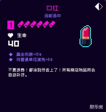 霓虹深渊无限口红强度怎么样?霓虹深渊无限游戏是一款Roguelike平台动作游戏,玩家们将要在地牢世界开始冒险,战斗的时候会掉落不同的强大的道具,比如纪念品,可以帮助玩家们提升自己的实力,许多玩家想知道霓虹深渊无限口红怎么样,可以来了解一下霓虹深渊无限口红强度攻略。