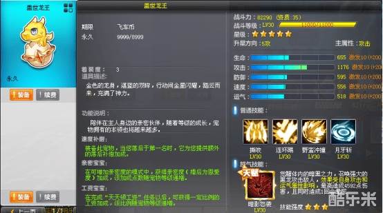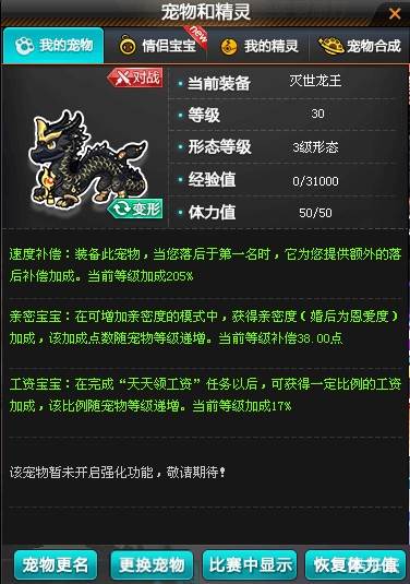 灭世龙王为35资质的速度宠物,采用 “5速”的策略来进行宠物对战。