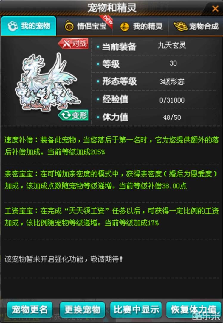 九天玄灵为35资质的速度宠物,采用 “5速”的策略来进行宠物对战。