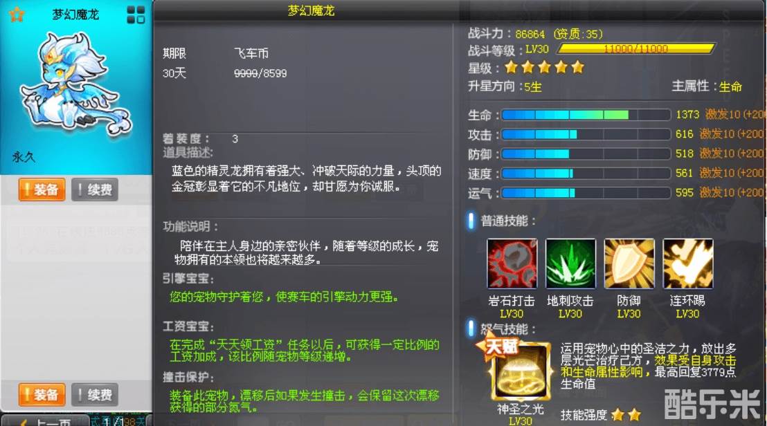 QQ飞车端游宠物九天玄灵