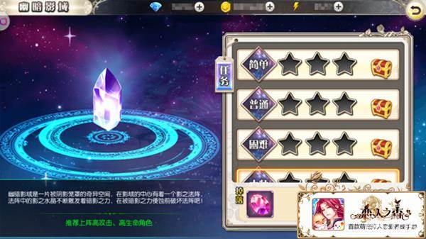 幽暗影域顾名思义,是一片被阴影笼罩的地域,在这片空间的中心地带有一个影之法阵,法阵中水晶是暗影之力的来源,如果不想被暗影之力控制,那就赶紧破坏这个法阵吧!攻击力高的力型王子在这个关卡比较有优势,他们防御力强生命值高,不论攻防都可以!