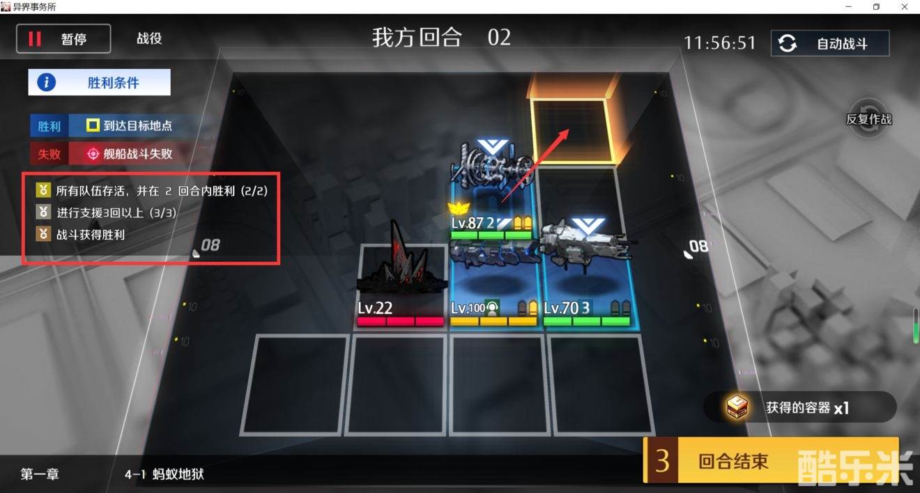 4、第二回合特种直接右上出门结束。支援3次+两回合