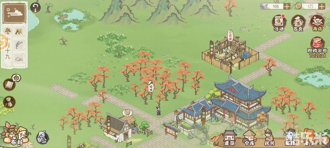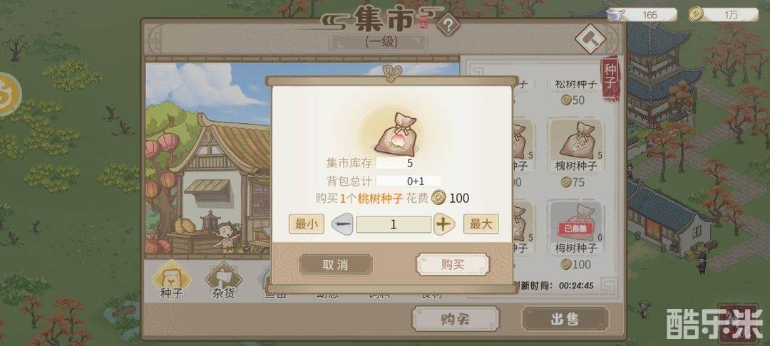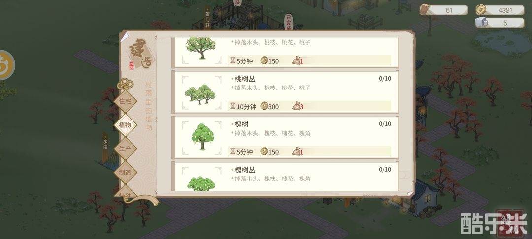 后面就可以去,种树(单棵,树丛)都可以,推荐去集市买桃树种子,种桃树,适合慢节奏,也挣钱。