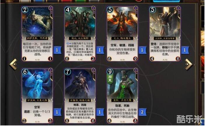 食腐渡鸦x3 BB (2) 纳萨克斯,不死者x1 BB (2) 地下街夺取者x3 B (3) 狡诈预言师x3 B (3) 奈克提舞空师x1 W