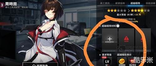 2、玩家在开研究所功能之后就可以开启突破功能了,用重复的角色去提升主力角色,不过推荐等到主力角色达到100在使用,否则会很亏;