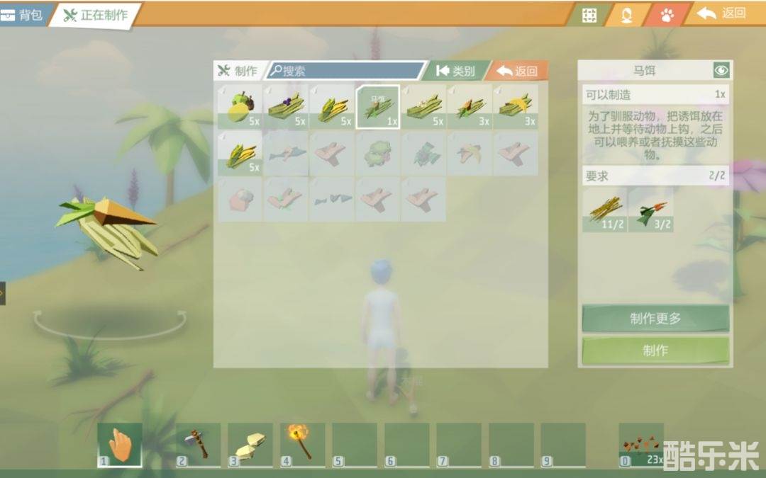 制作马诱饵需要胡萝卜和干草,玩家可以多采集一些原料,根据【诱饵】的制作要求进行合成。