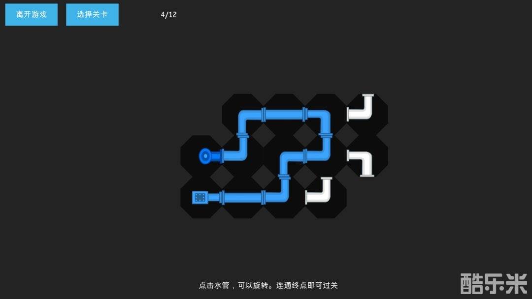 第四关:由于上方路线多处是弯头,所以需要多绕一点距离才能让弯头水管全部连通。
