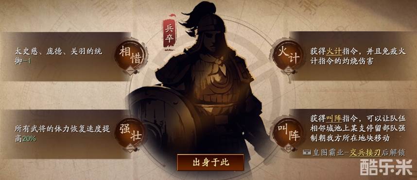 兵卒的出身,让人觉得自己化身为大头兵,但实际上,效果还是挺牛的。叫阵、火计,等以往非常给力的效果都在其中,并且全武将直接体力回复速度+20%