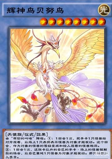 用辉神鸟1效果展示手牌中的凭依的血魂,将对手场上一个怪兽变为3星,然后通召凭依的血魂释放自己获得对手的怪,然后再利用辉神鸟的2效果回收凭依的血魂下回合使用,靠墓地中的原初的叫唤保证辉神鸟的站场。