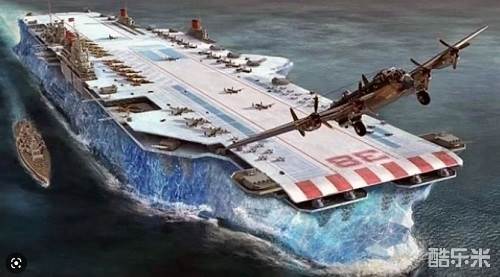 1943年英国为解决航母短缺问题而提出的应急方案、并完成了其设计图,其12米厚的混合冰层使其防御力空前强大, 当时绝大多数英美高级将领都认可了这一设想,并对“冰航母”充满信心,但由于当时科技水平限制,许多技术难题无法解决,最终不了了之。但“冰航母”这一设想空前绝后,其设计图至今扔保存在英国皇家海军的档案馆中。