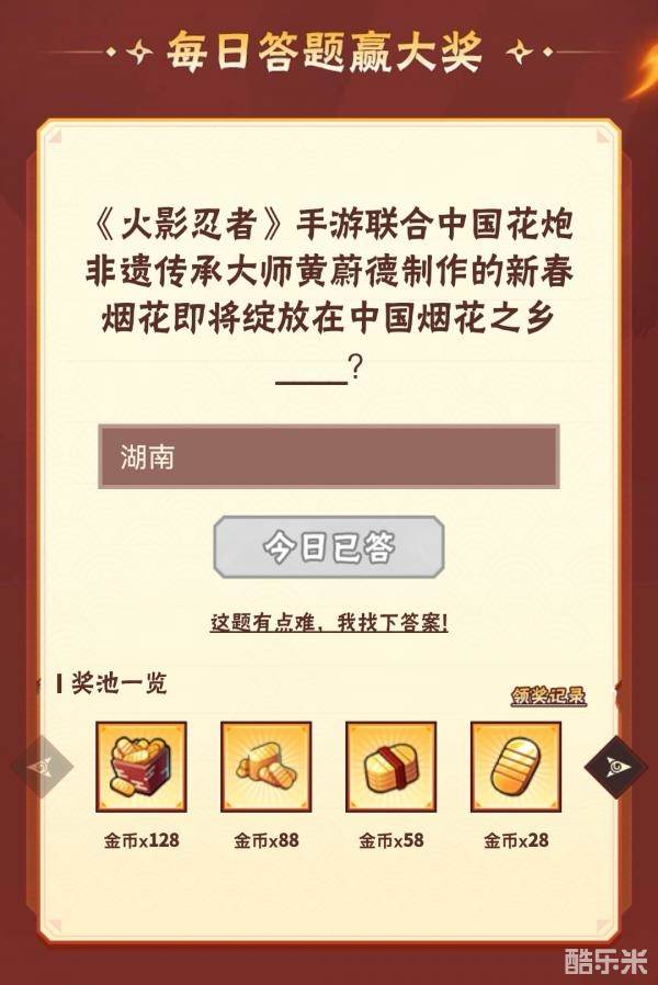 问题:火影忍者手游联合中国花炮非遗传承大师黄蔚德制作的新春烟花即将绽放在中国烟花之乡?
