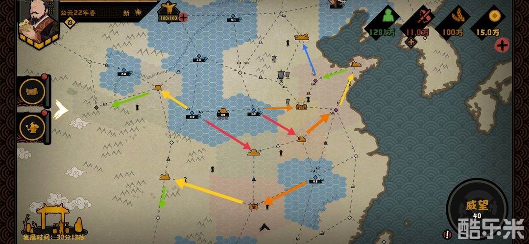 算算时间,此时解忧也应该到达了出使的国家,给双方加了战力,那么之后便能全面发兵了。(记得军心加速)