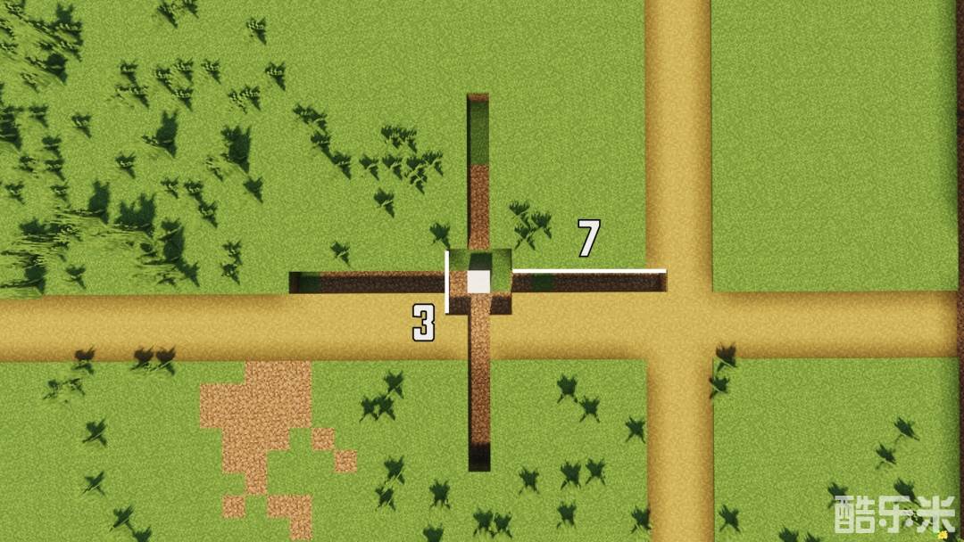 在地上挖一个一格深3*3的坑,以这个坑位中心向上下左右分别挖7格