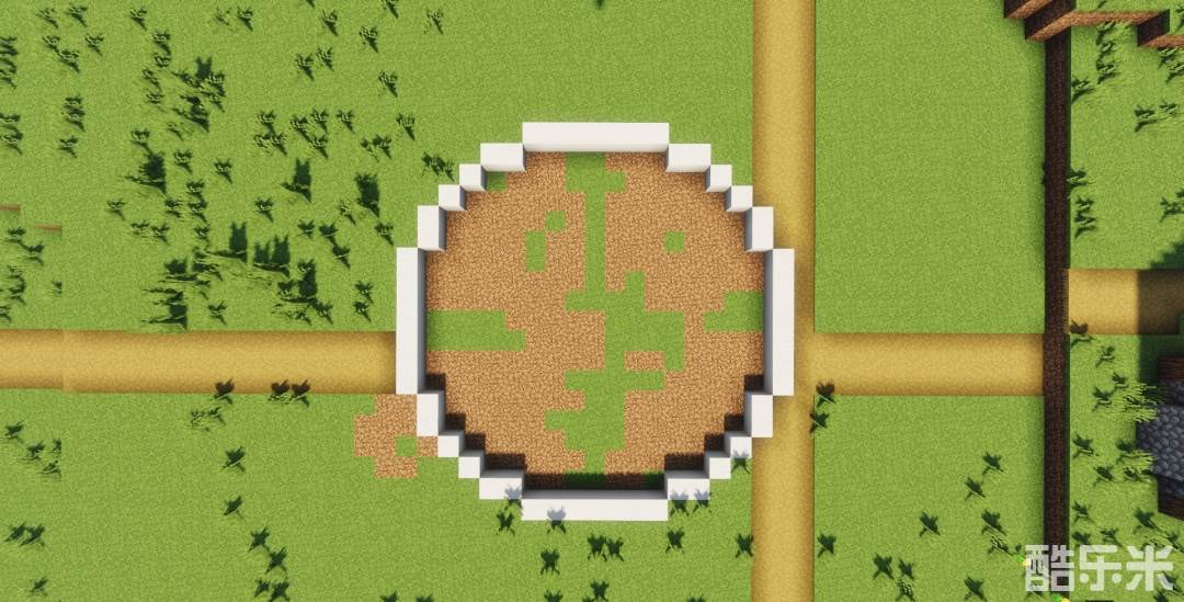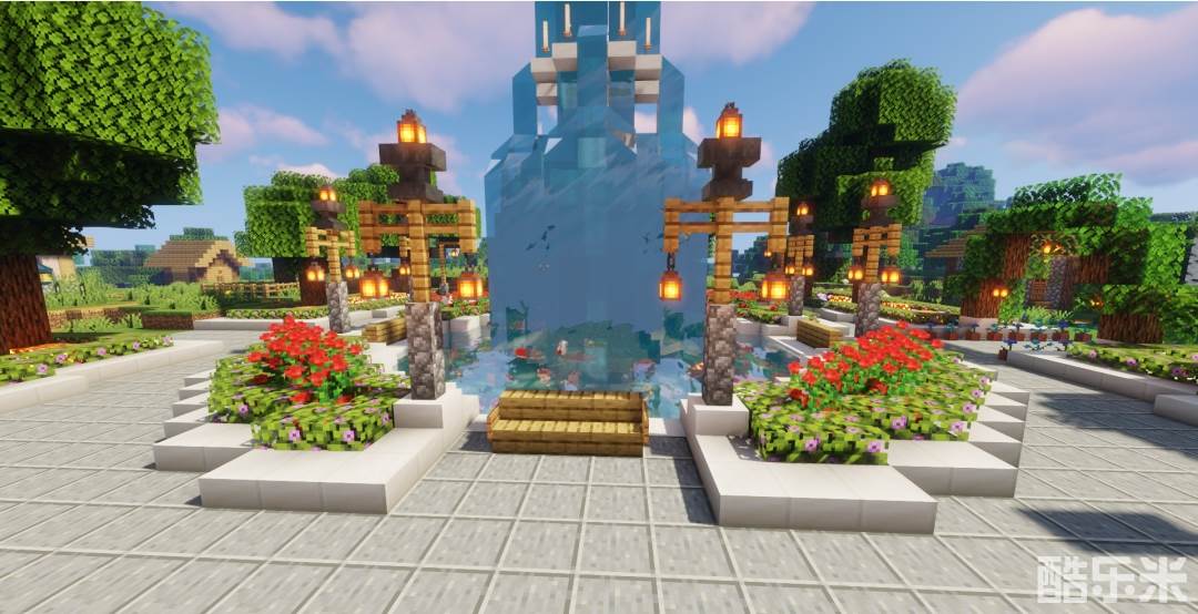 在四周的花坛内种上橡树和各色鲜花,用萤石点缀其中,再在拐角处放置一个路灯