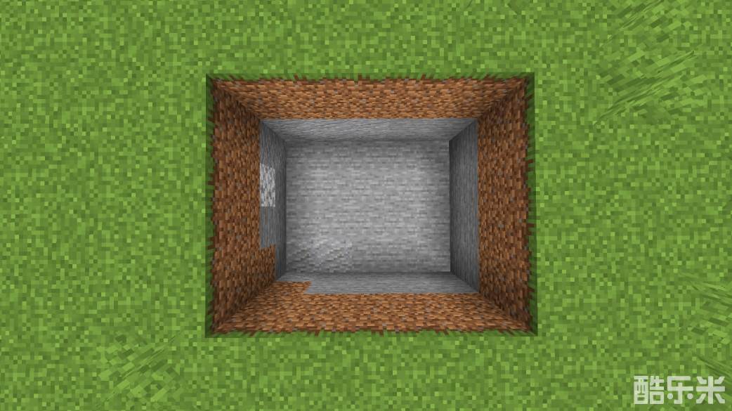 首先找一个空旷的地方,挖一个长5格,宽4格,深4格的坑
