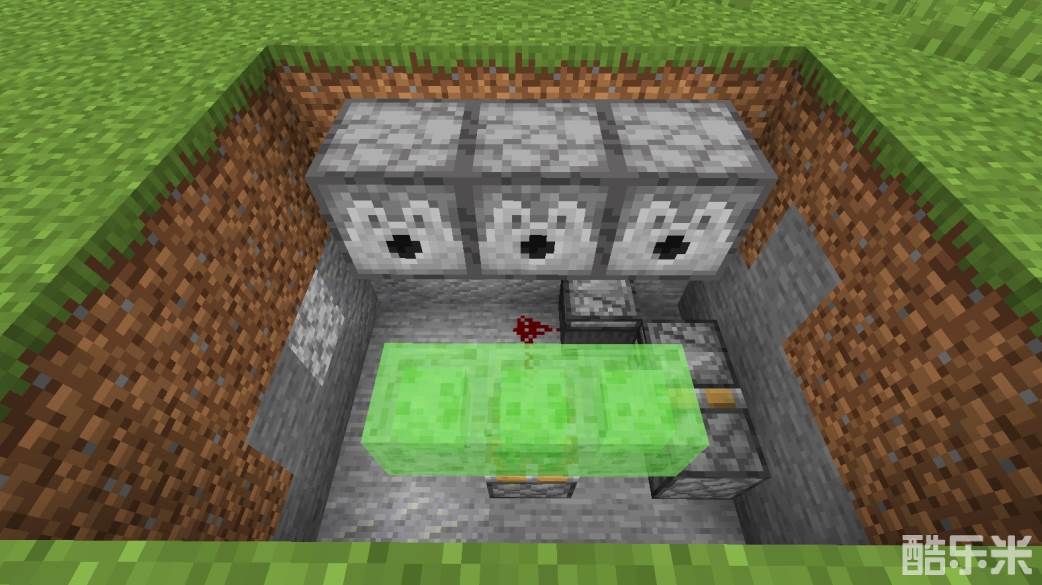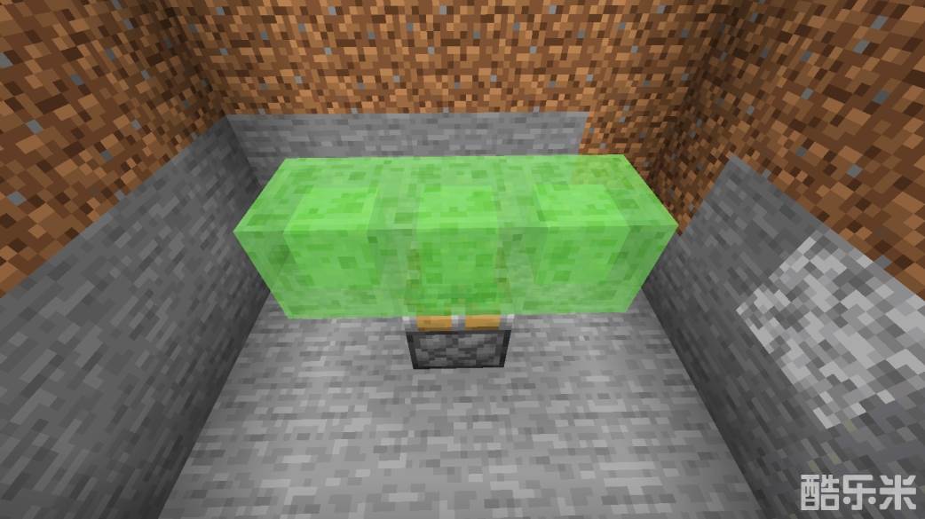 在坑中放置一个粘性活塞,并在活塞上方放三个粘液块
