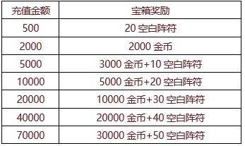 【活动内容】金币奖励满额返还,额外赠送大量空白阵符,天地水火,风雷山泽,奇门阵符,尽收囊中,一切尽在本期月末超值大放送。