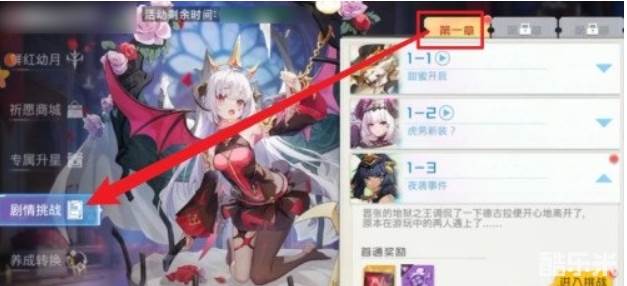 3、在活动列表中选择【剧情挑战】并点击进入【第一章】。
