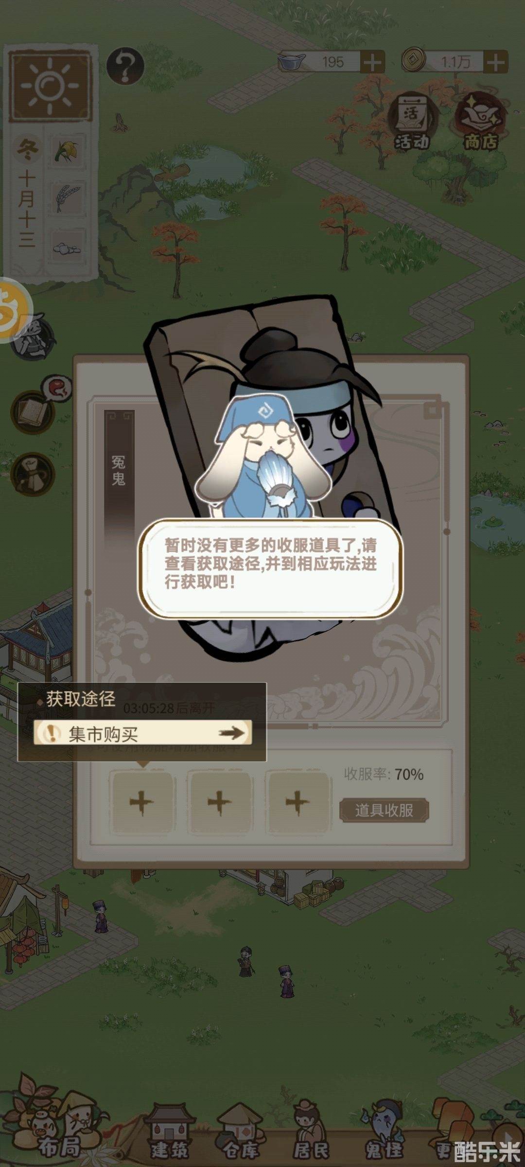 收服鬼的方式有地图捉鬼和道观抽池子,地图上的鬼是随机刷新的(出现的话会有提示)