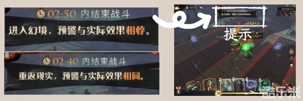 幻境与现实会10秒一次轮流出现在场上,届时屏幕上方会有提示,出现时及时躲避即可。