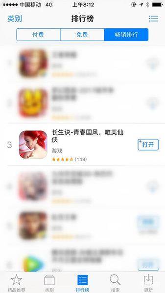 AppStore畅销榜前三《长生诀》今日安卓首发