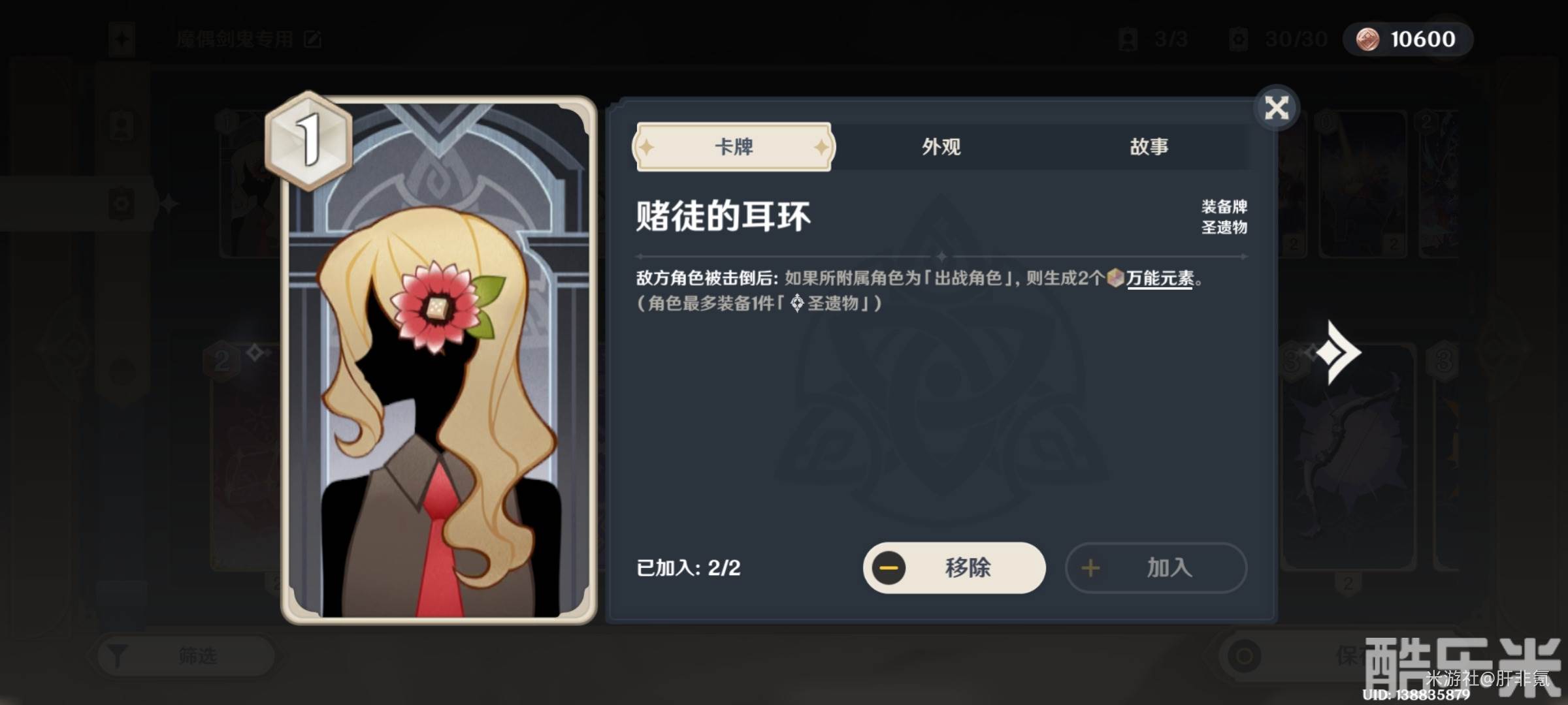 赌徒的耳环×2。