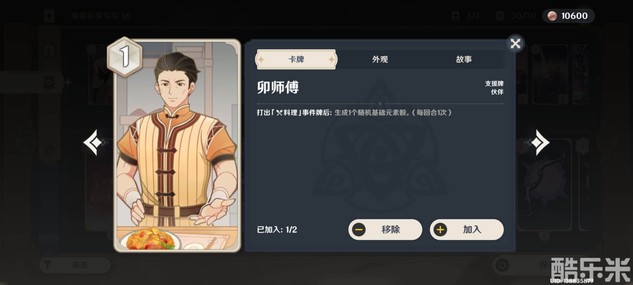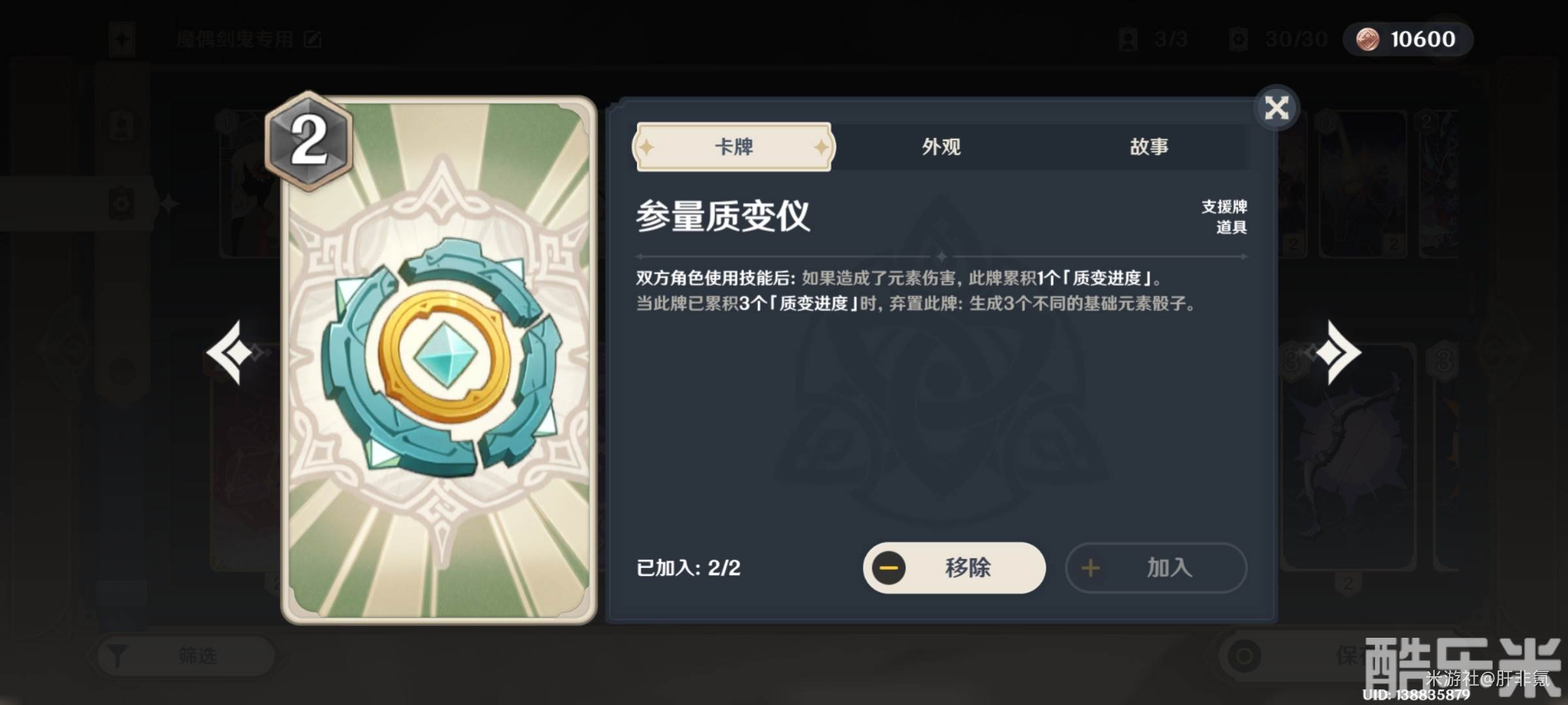 卯师傅×1,提米×1,常九爷×2,刘苏×2,参量质变仪×2。
