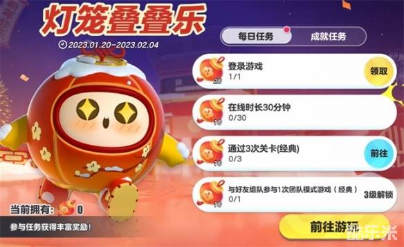 灯笼堆叠,福满乾坤!1月20日至2月4日,灯笼叠叠乐活动贺岁来袭。完成每日任务与成就任务获取小灯笼,即可兑换“灯笼外观自选盲盒”。
