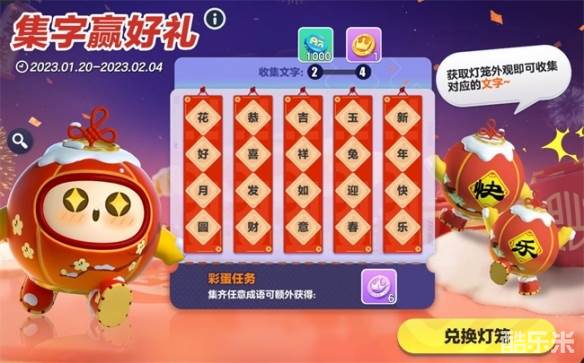 收集文字即可获得瓶盖和金币奖励,集齐某一主题的所有灯笼解锁成语,还能额外完成彩蛋任务,领取彩虹币大礼。