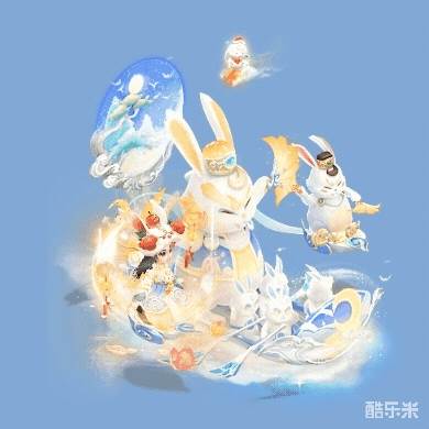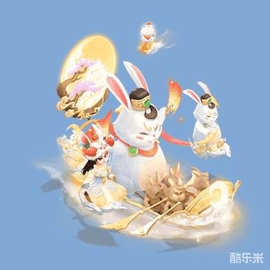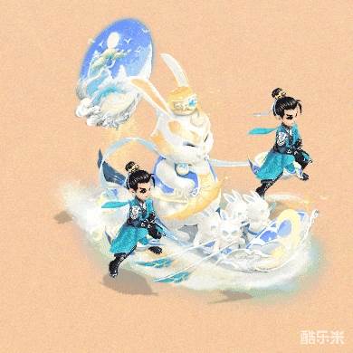 月宫中的仙兔们以月桂木制成小舟,大仙兔举扇小仙兔摇橹,带着一派红火欢乐的气息,邀请有缘人共同畅游天上人间,揽月拂花,共享仙情逸致。
