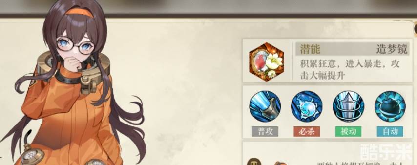 铃兰这个角色的阶级是s级,潜能为积累狂意使自己的攻击提升,她一共有四个技能,分别是普攻、必杀、被动和自动技能,普攻相信大家都知道,就是一般攻击,下面主要为大家讲解其他三种,首先是自动技能——抑·扬,它会有三种形态,分别是可以造成小范围伤害且有几率禁锢敌人的“常态”,可以造成大范围伤害且有几率禁锢敌人的“暴走”,而最后一个就是直接使敌人无法移动的“禁锢”。