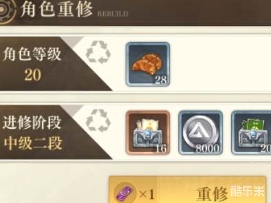 玩家在进入“角色”以后,点击想重置的角色,点击上面的第一个标志就可以进入“角色重修”了,在这里我们可以看到重修后可以获得 的资源,再点击“重修”这个角色就可以被重置了。