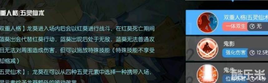 刚开始进场的时候,龙葵为红葵状态,死亡后替换为蓝葵状态,在蓝葵状态下只能使用技能,无法使用普通攻击。