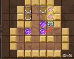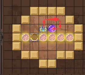 12、然后将左侧凹槽中的珠子顶到最左侧的凹槽,然后走到上方左侧的珠子将其顶到正下方的凹槽中。