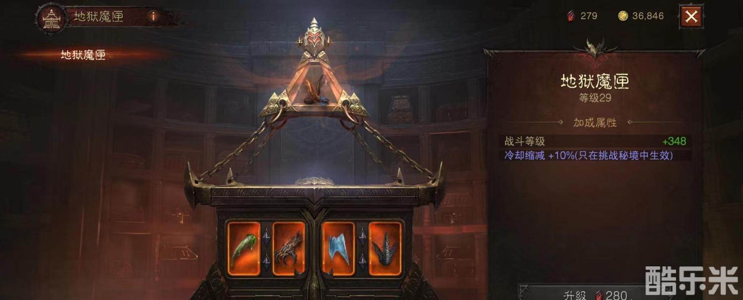 4、击败魔王后可以从中获得魔王的遗骸,将遗骸放入地狱魔匣可以带来特殊属性,提高在秘境副本里面的能力。