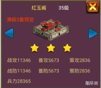 满级满星属性:11346战攻(战防)5673普攻(普防),2836策攻(策防),28365兵力