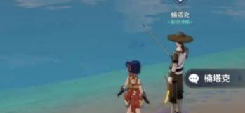 1、我们传送到蒙德然后在如图所示的位置可以看到楠塔克在这里钓鱼,我们上前互动。