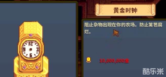 黄金时钟在游戏中有着好几种特殊效果,而想要得到该道具光有钱可是不行的,还需要完成前置任务才行,那么下面小编就来告诉大家星露谷物语黄金钟在哪买。如果还不知道购买黄金钟条件是什么的话,那么就一定要紧跟小编的步伐。玩家在准备金币的时候,可不要忘记先去吧任务给完成了。