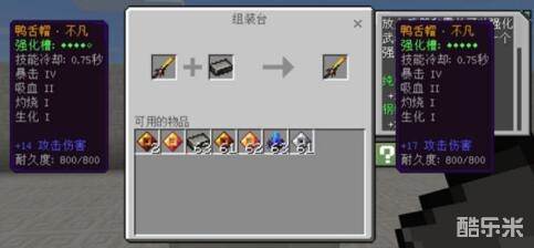 如果冒险家放置了一块钢锭,武器的攻击面板则会提升3点。