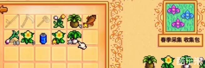 2、第二个包有三种选择,第一种是工艺室的建筑收集包,这个只要升级了爷子下过矿就能开。第二个是茶水间春季作物收集包,可以开局第一天就种上那作物,这样的话13号就可以完成了,也就是说可以在5号以后再种。第三个选择是鱼缸的蟹笼包,运气好杀岩石蟹掉出螃蟹能够掉落,当然也可以在沙滩通过捡鸟给、蚌、牡蛎弄,但是这个方法比较的看脸。