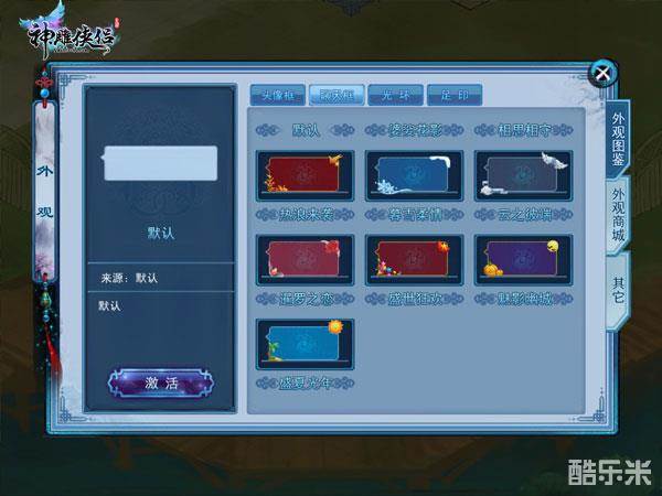 自定义头像那么好看,没有相配的头像框怎么行呢?本次资料片更新后,大侠可以选购头像框啦。颜色不一,造型百变,搭配头像更个性哦。
