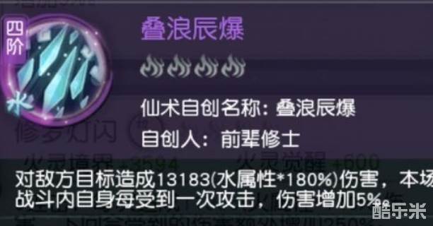 叠浪辰爆是游戏中一个非常厉害的水系仙术,玩家们都可以感觉到它的威力,但是却不知道具体的效果,其实叠浪辰爆的效果主要就是对敌人造成一点八倍伤害以及受到的伤害越多攻击力越高的效果哦!