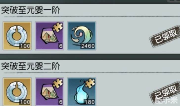 玩家进入飞升的奖励界面之后就会看到自己已经获得的所有奖励和未来达到相应仙术段位时的奖励了,基本都是一些绑玉和灵魄,还有比较珍贵的紫色仙术碎片,可以帮助玩家随机合成一个紫色的高阶仙术哦!